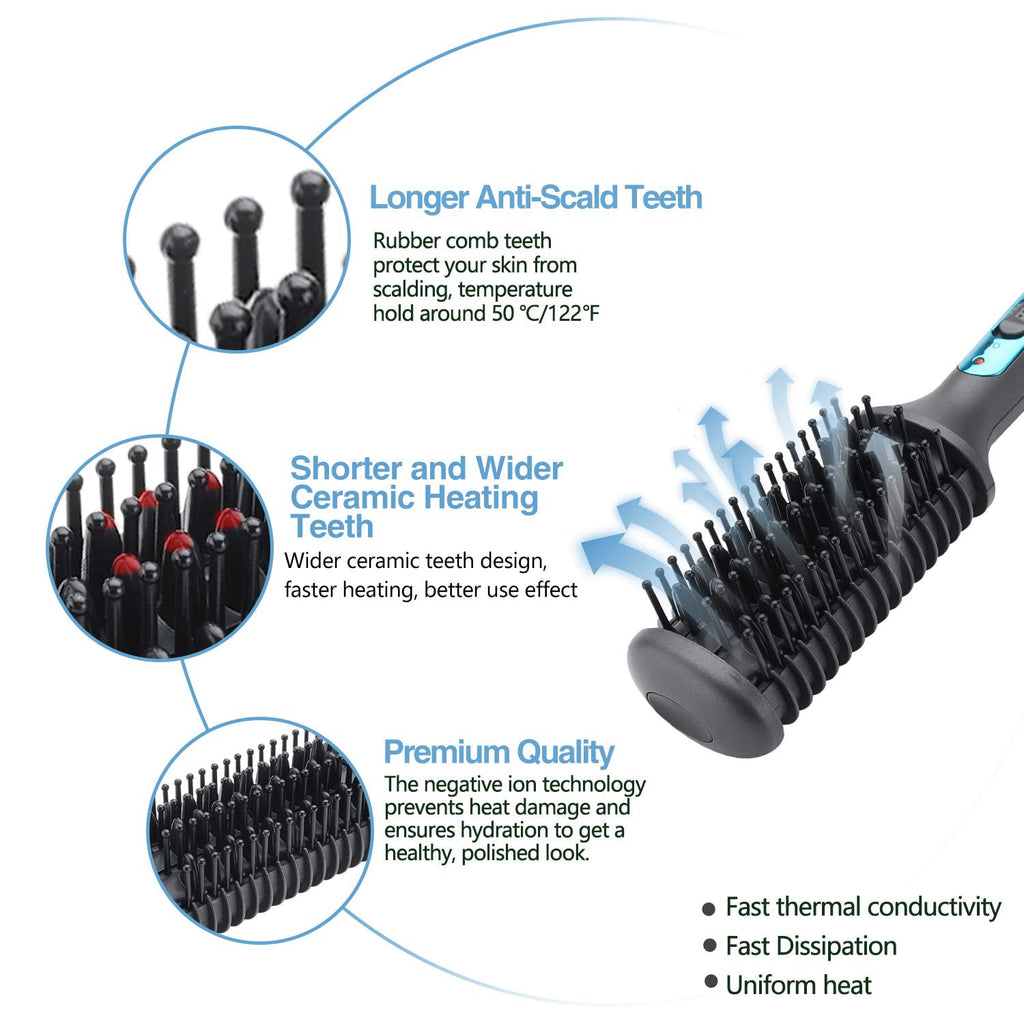 - MULTIFUNCTION: This product can be used for men with different types of beard. Curly, thin, thick, flat, straight, long, or short. It’s also suitable for head hair for both men and women. The electric beard/hair comb works just fine for your needs.